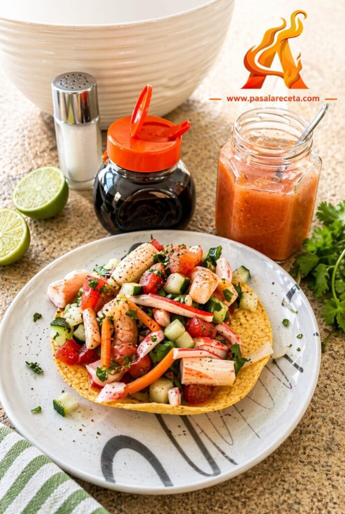 - Surimi, Rayarlo en mandolina. (Se puede hacer también con Abulón, caracol o almeja)